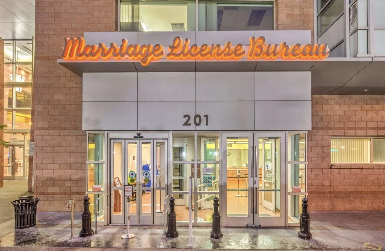 In Las Vegas, licenses are issued by the Clark County Marriage License Bureau.