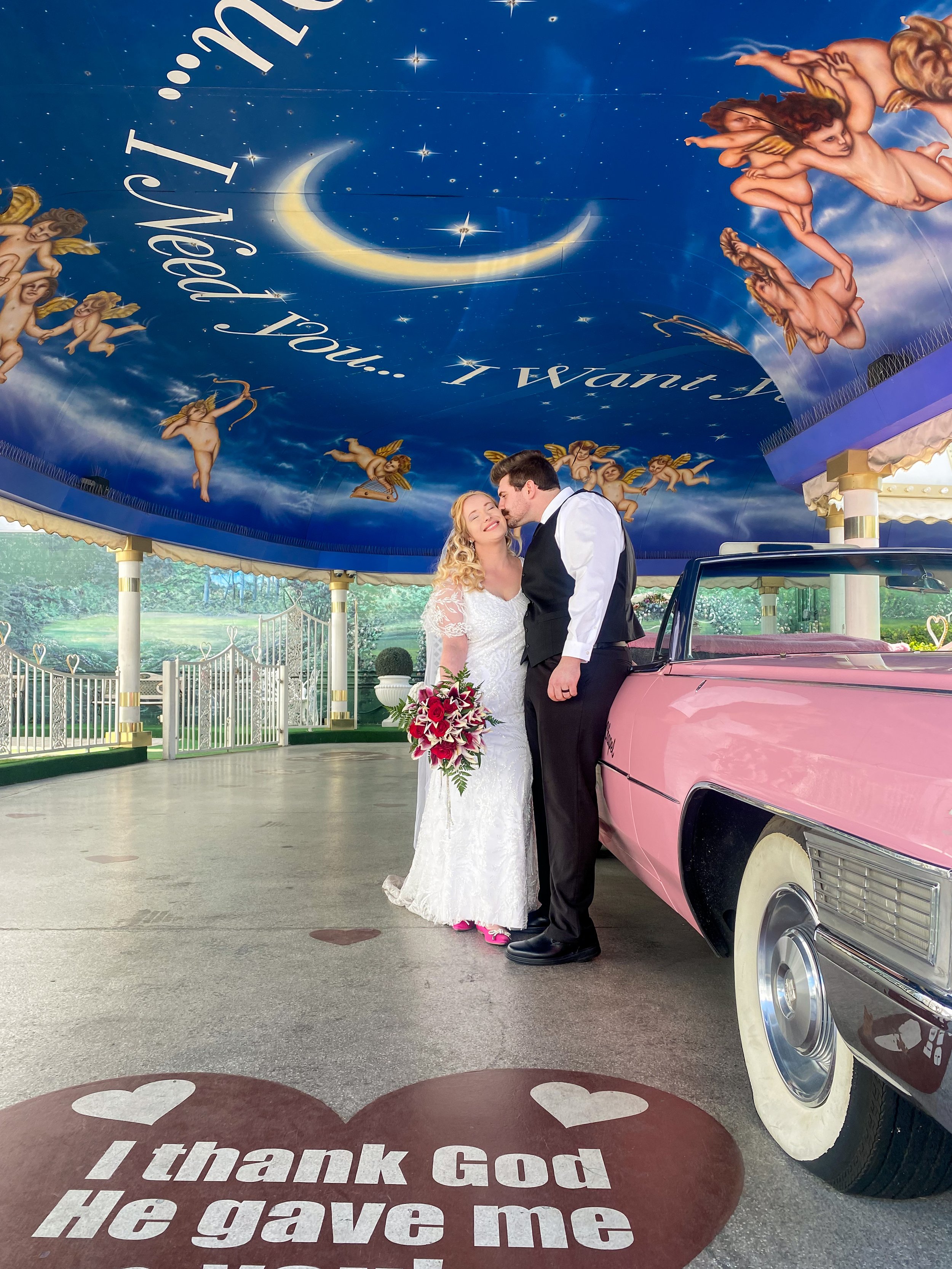 Some couples also choose classic Vegas transportation like pink Cadillacs or vintage cars.